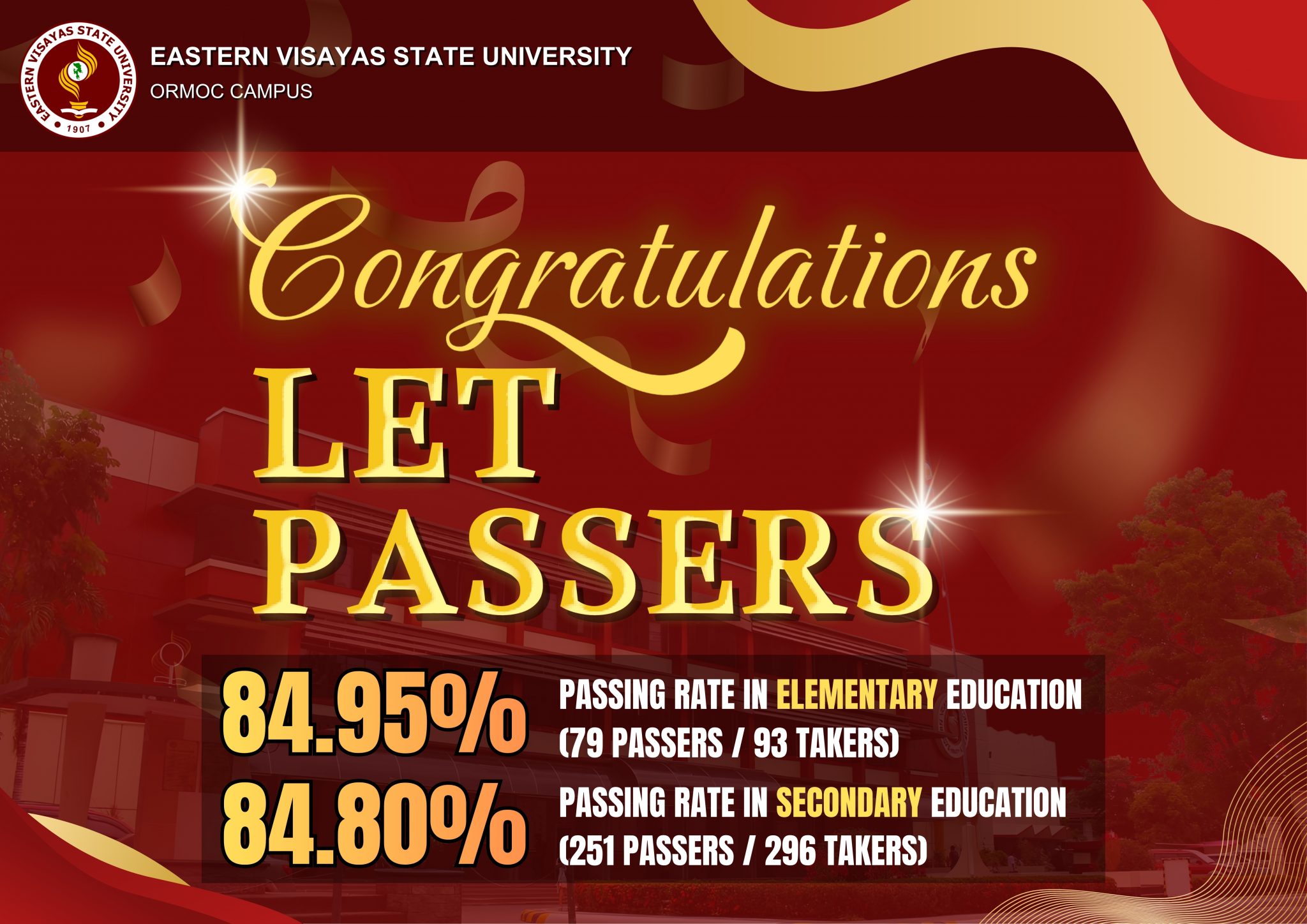 Dec26 EVSU-Ormoc Celebrates New Licensed Professional Teachers EVSU-Ormoc Shines in Recent LET; BSED Math Records Flawless 100% Passing Rate ORMOC CITY, LEYTE — Eastern Visayas State University – Ormoc Campus (EVSU-OC) has once again solidified its standing continue reading : EVSU-Ormoc Celebrates New Licensed Professional Teachers
